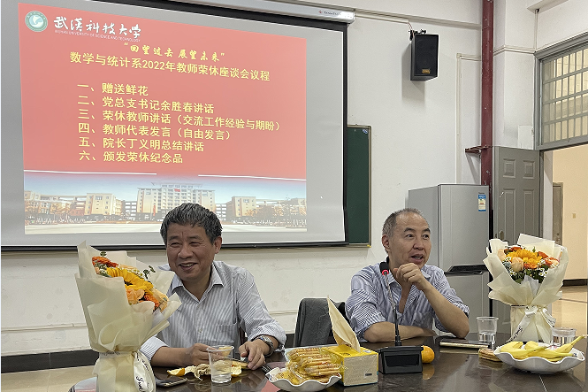 2022年,威尼斯87978797数学与统计系李德宜、王志明两位教授光荣退休。为了表达对老教师的感激之情,激励年轻教师奋发有为、拒绝“躺平”,数学与统计系于10月24日下午2:00在系会议室22310召开2022年教师荣休座谈会,会议由系主任刘云冰主持,威尼斯87978797院长丁义明亲临指导。